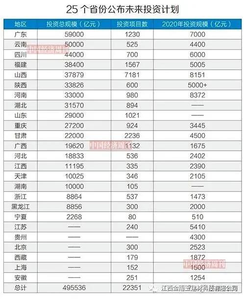 例如,云南省2020年的“四个一百”重点项目计划即将出炉,2020年将推出525个重点项目,总投资约5万亿元,2020年计划完成投资4400多亿元。